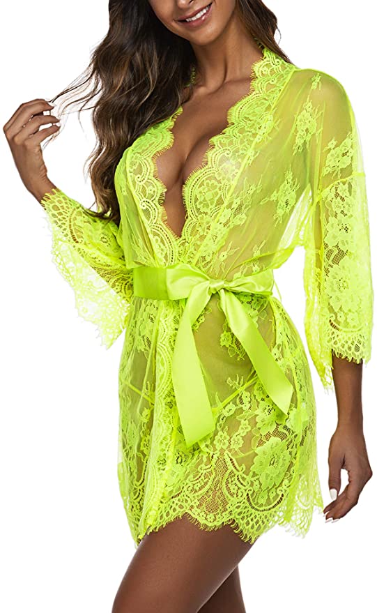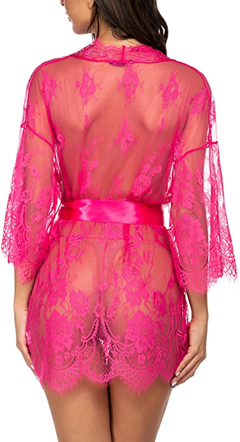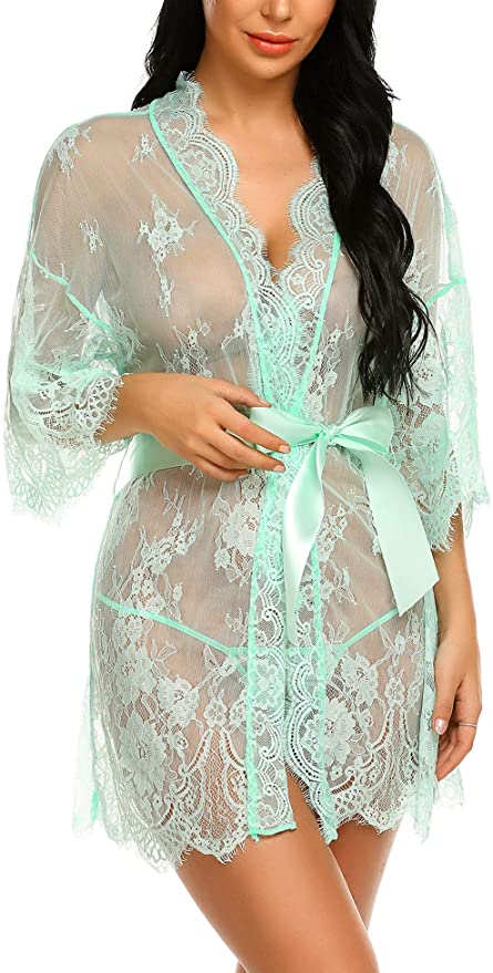 Direct selling women lace Kimono Robe doll underwear mesh Nightgown